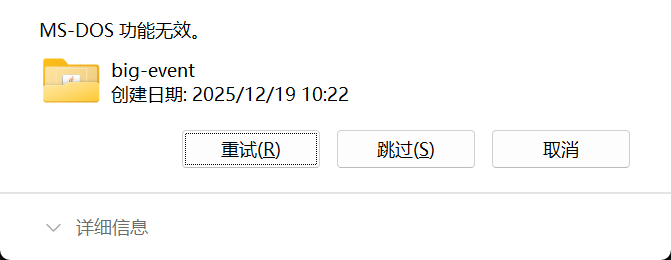 robocopy E:\empty_dir "E:\sharedoc\后端代码\big-event" /MIR /R:0 /W:0